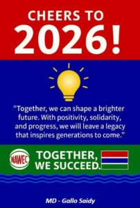 NAWEC welcomes 2026 with renewed commitment to powering homes 💡, flowing water 💧, and serving The Gambia 🇬🇲 with unity, integrity, and progress.